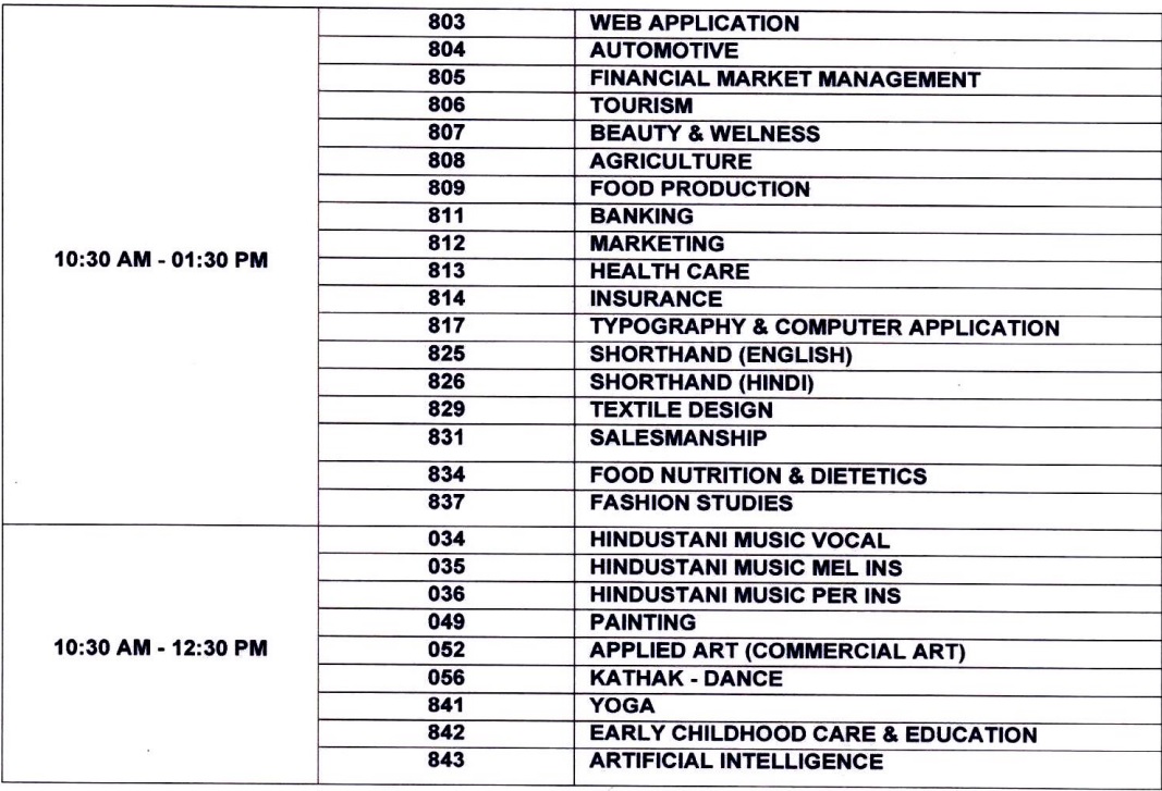 सीबीएसई की ओर जारी किये गए टाइम टेबल के अनुसार कक्षा 12वीं के लिए सभी विषय की परीक्षाओं का आयोजन केवल एक दिन 15 जुलाई 2025 को किया जाएगा। 12th क्लास का एग्जाम दो विषय के अनुसार सुबह 10:30 से दोपहर 12:30 तक एवं सुबह 10:30 से दोपहर 1:30 तक संपन्न करवाया जाएगा।